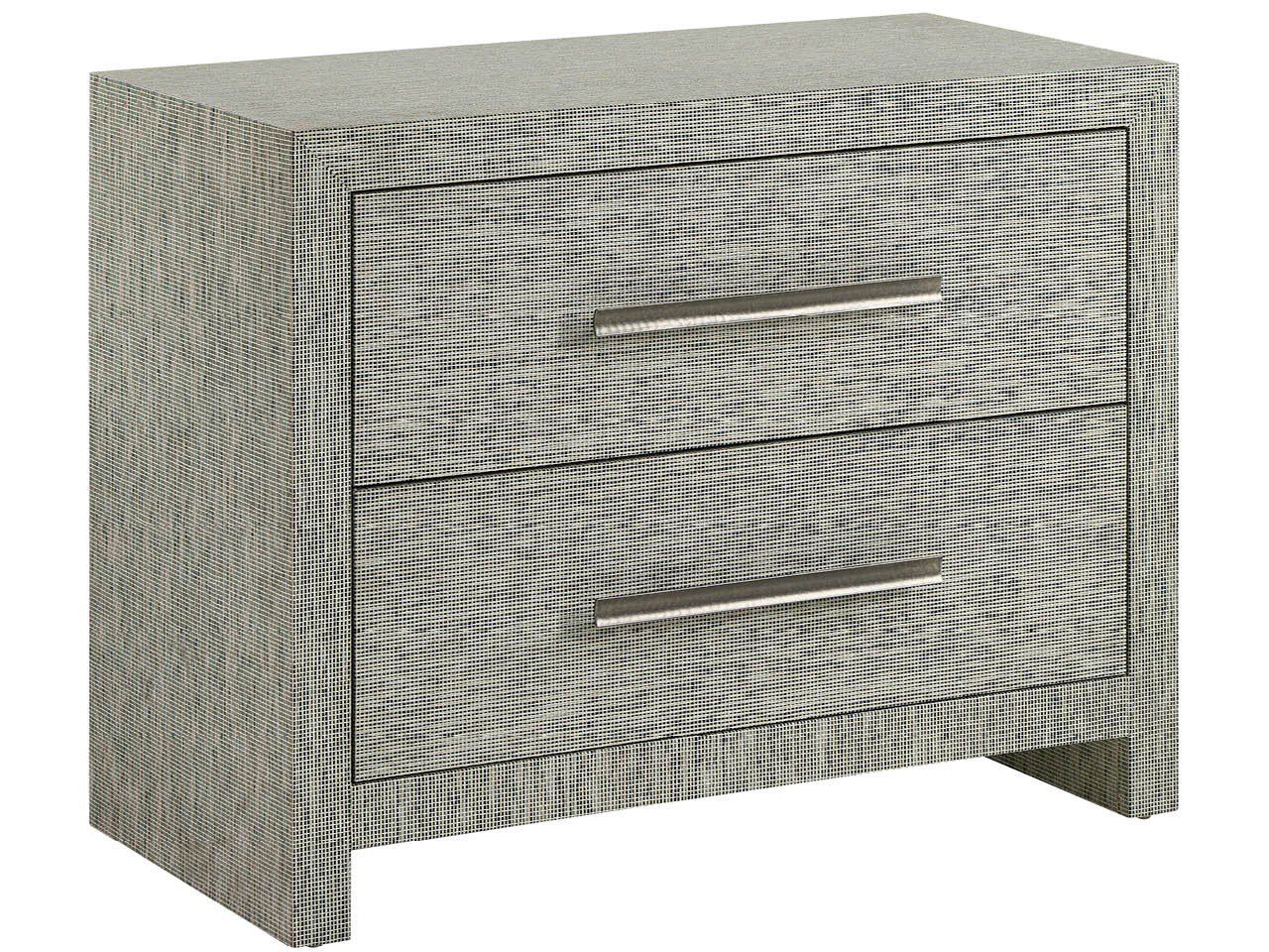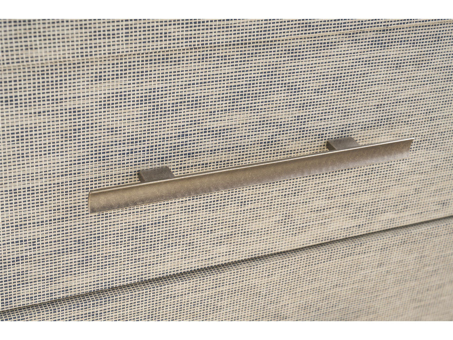The Seascape Chest is wrapped in Seascape textured grasscloth wallpaper, bringing subtle texture and coastal sophistication to any room. The unique dimensions of this chest provide versatile storage solutions, making it a perfect option for a nightstand alternative or accent piece.
