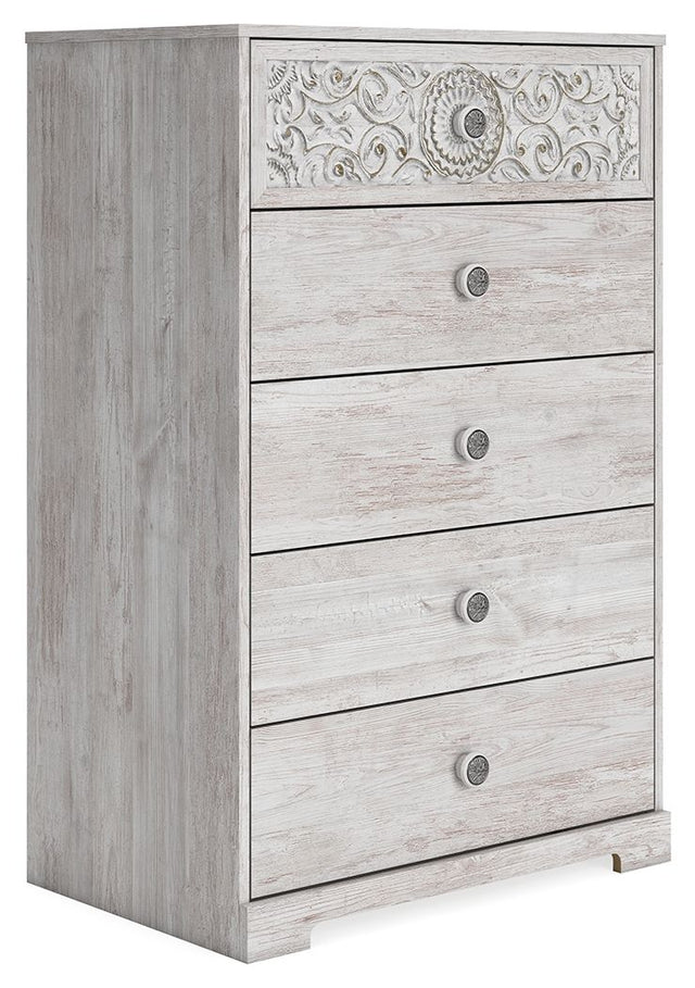 Paxberry - Five Drawer Chest - Whitewash