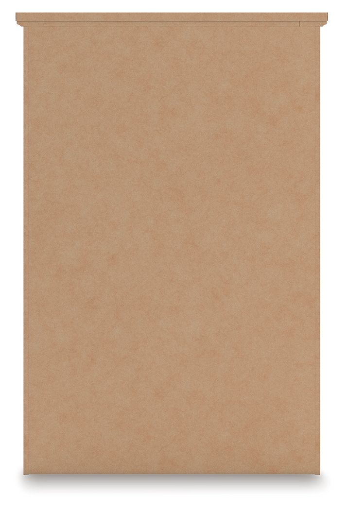 - Drawer interiors are lined with a faux linen laminate for a clean, finished look