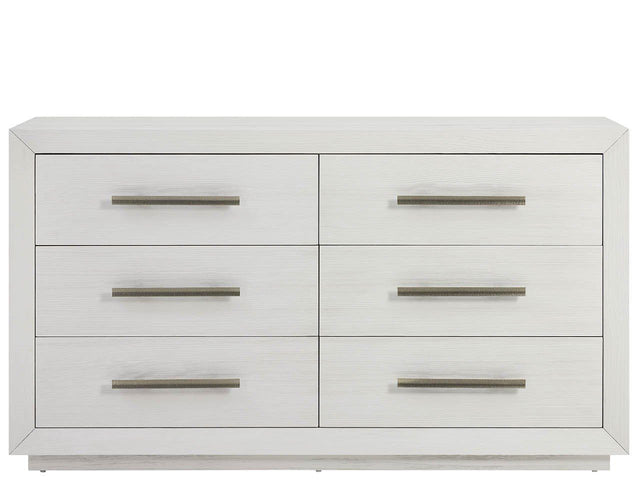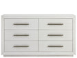 The Shoreline Dresser offers six spacious drawers with sleek bar pulls, making it both stylish and practical for everyday use. This dresser includes felt-lined jewelry trays in the top drawers and provides exceptional storage capacity with its fresh Shoreline finish.