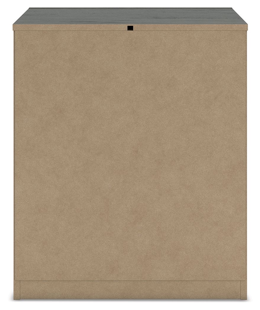 - Drawer interiors are lined with a faux linen laminate for a clean, finished look