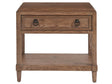 The Drawer Nightstand offers a blend of rustic charm and modern convenience. Its full finish and metal ring pulls create a warm and inviting aesthetic. The single drawer and open shelf provide ample storage space for your bedside essentials