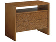 - Open Compartment At Top, 2 Drawers With Decorative Hand-applied Pencil Rattan Overlays, Touch-to-open Drawer Guides