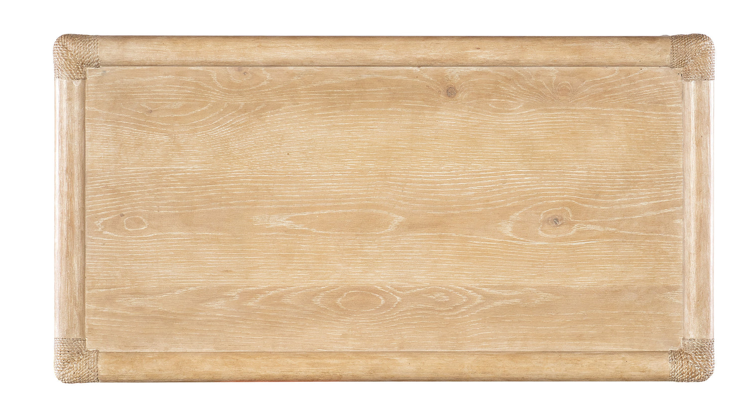Inspired by tropical getaways, the Retreat Pole Rattan Nightstand is a blend of natural materials in a laid-back, versatile design. Crafted of Oak and Maple Veneers with Rope accents, the nightstand is finished in the sand-colored, transparent by design to reveal the unique grain patterns in the wood veneer. Featuring three self-closing drawers, the nightstand is accented by soft pewter-colored round knobs.