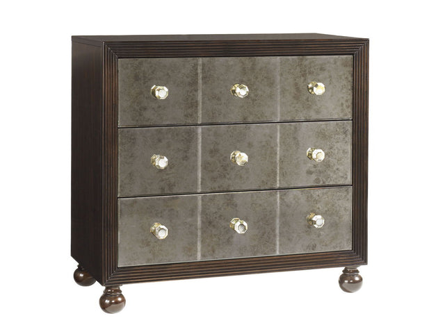 - The Three Antiqued Mirrored Drawer Fronts Reflect The Beauty Of Custom Drawer Pulls That Are Hand-crafted From Black-lipped Abalone Shell.