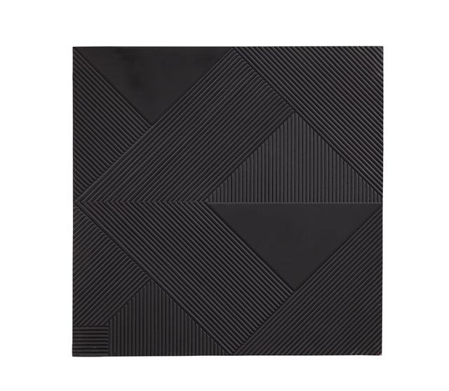 Board Game features symmetry, dimension and texture. This hand carved wooden wall hanging has a black matte finish.