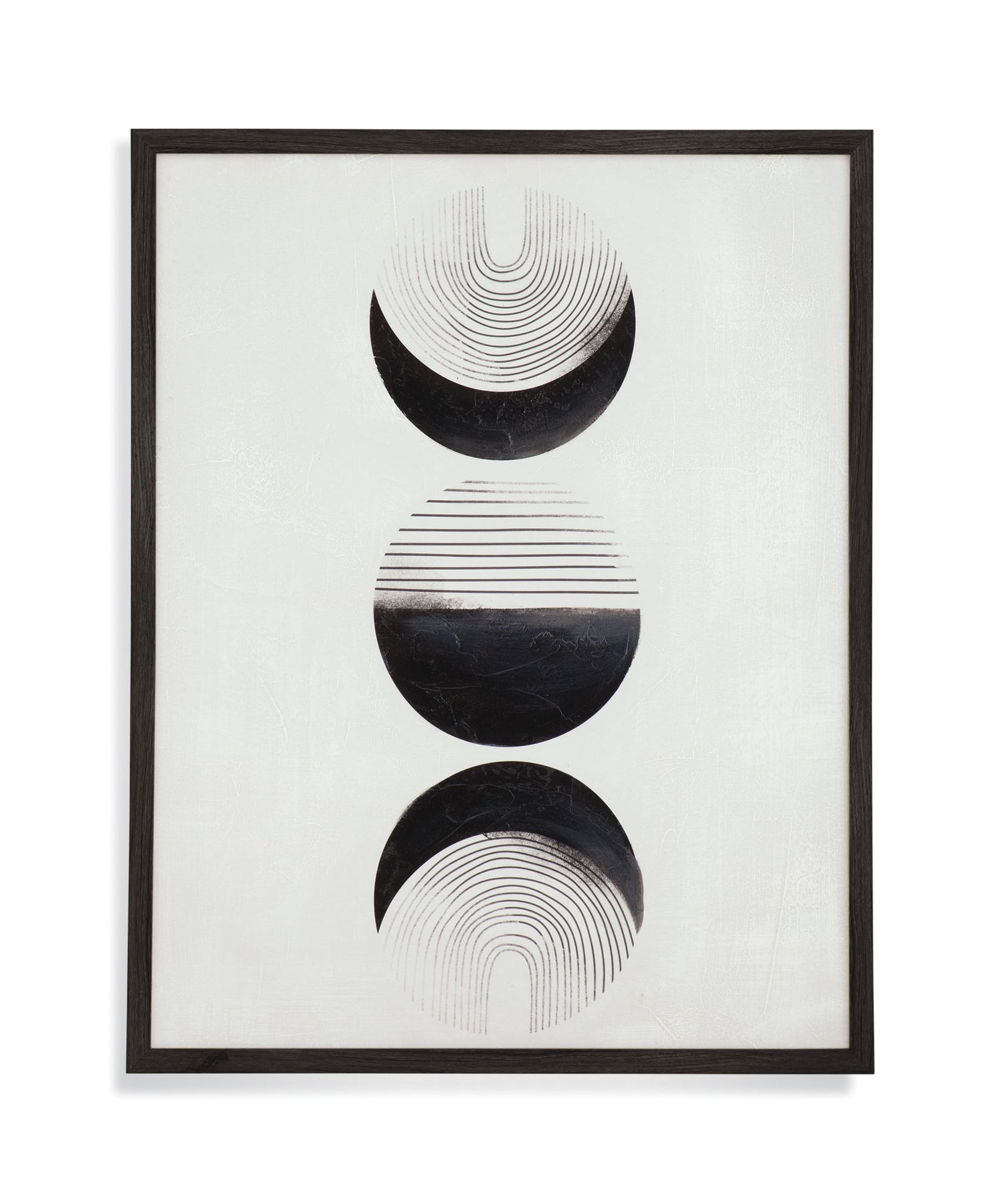 This Art blends modern minimalism with boho spirit, featuring a serene moon phase motif in contrasting hues of cream and black. Set in a sleek black frame, this piece brings celestial charm and balanced energy to any space. Its organic design and neutral palette make it a versatile accent perfect for grounding gallery walls or adding a sense of calm to contemporary interiors.