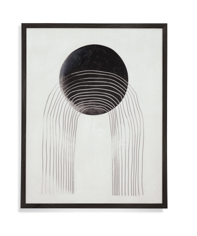 This Art blends modern minimalism with boho spirit, featuring a serene moon phase motif in contrasting hues of cream and black. Set in a sleek black frame, this piece brings celestial charm and balanced energy to any space. Its organic design and neutral palette make it a versatile accent perfect for grounding gallery walls or adding a sense of calm to contemporary interiors.