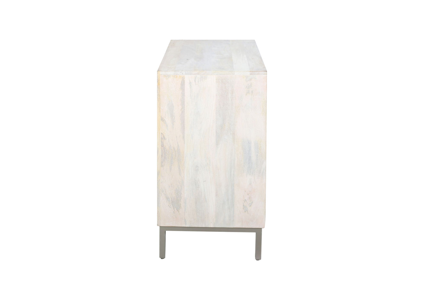 - Solid mango wood case finished in a light bleached tone