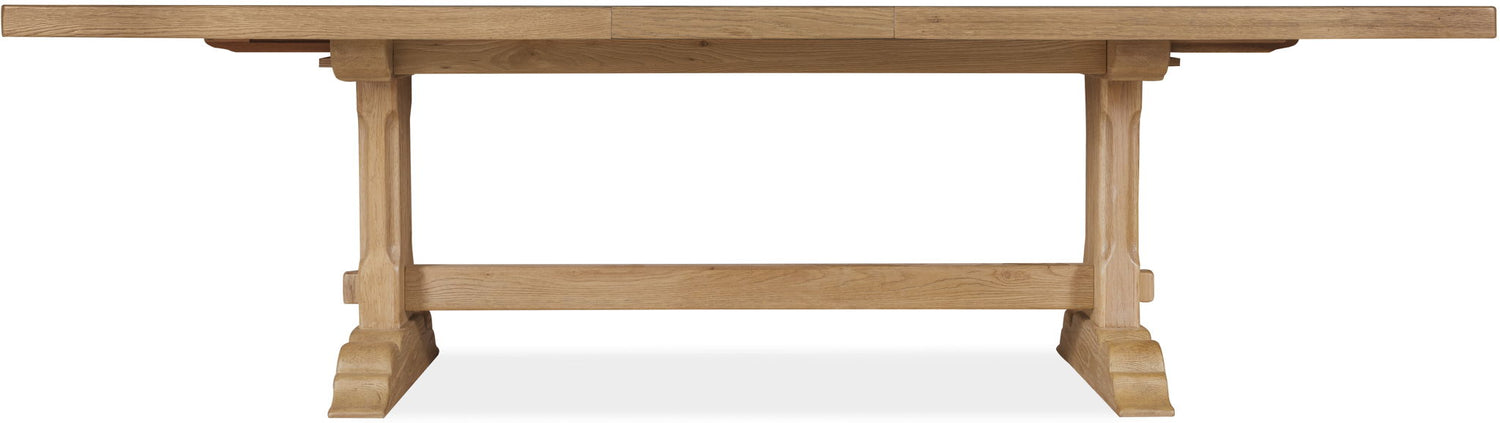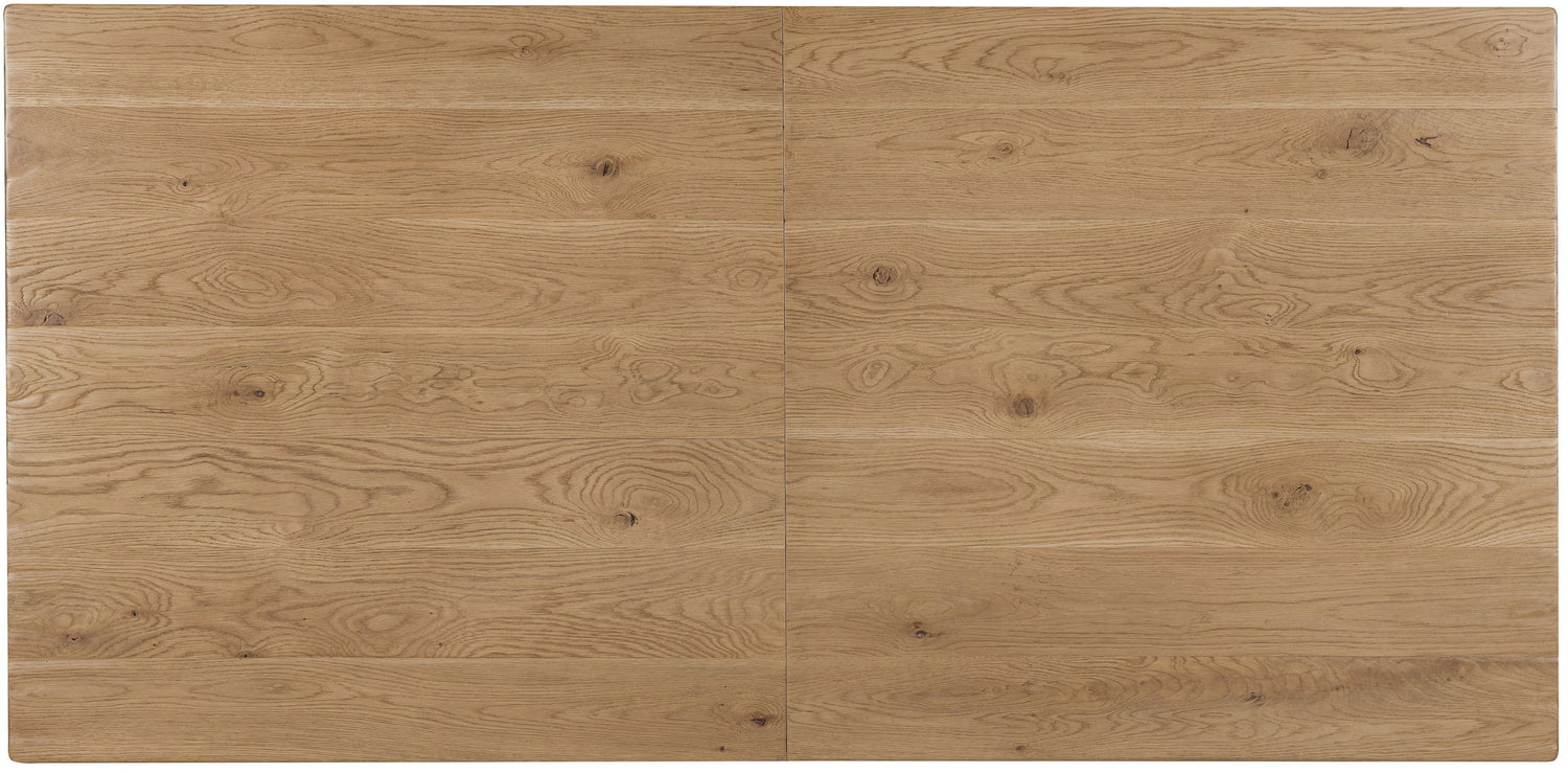 The Driftwood Rectangle Dining Table brings a sense of relaxed, rustic elegance to your dining room. Its warm, sun-faded oak tones and double pedestal base create a casual yet refined look perfect for open, inviting spaces. Designed for flexibility, the table extends to 126 inches with two 20-inch leaves, making it ideal for hosting gatherings with ease. This table appeals to consumers who love understated farmhouse charm paired with timeless craftsmanship.