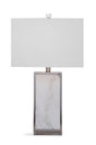 - This modern style lamp features a white and gray marbled body framed in a silver brushed steel frame