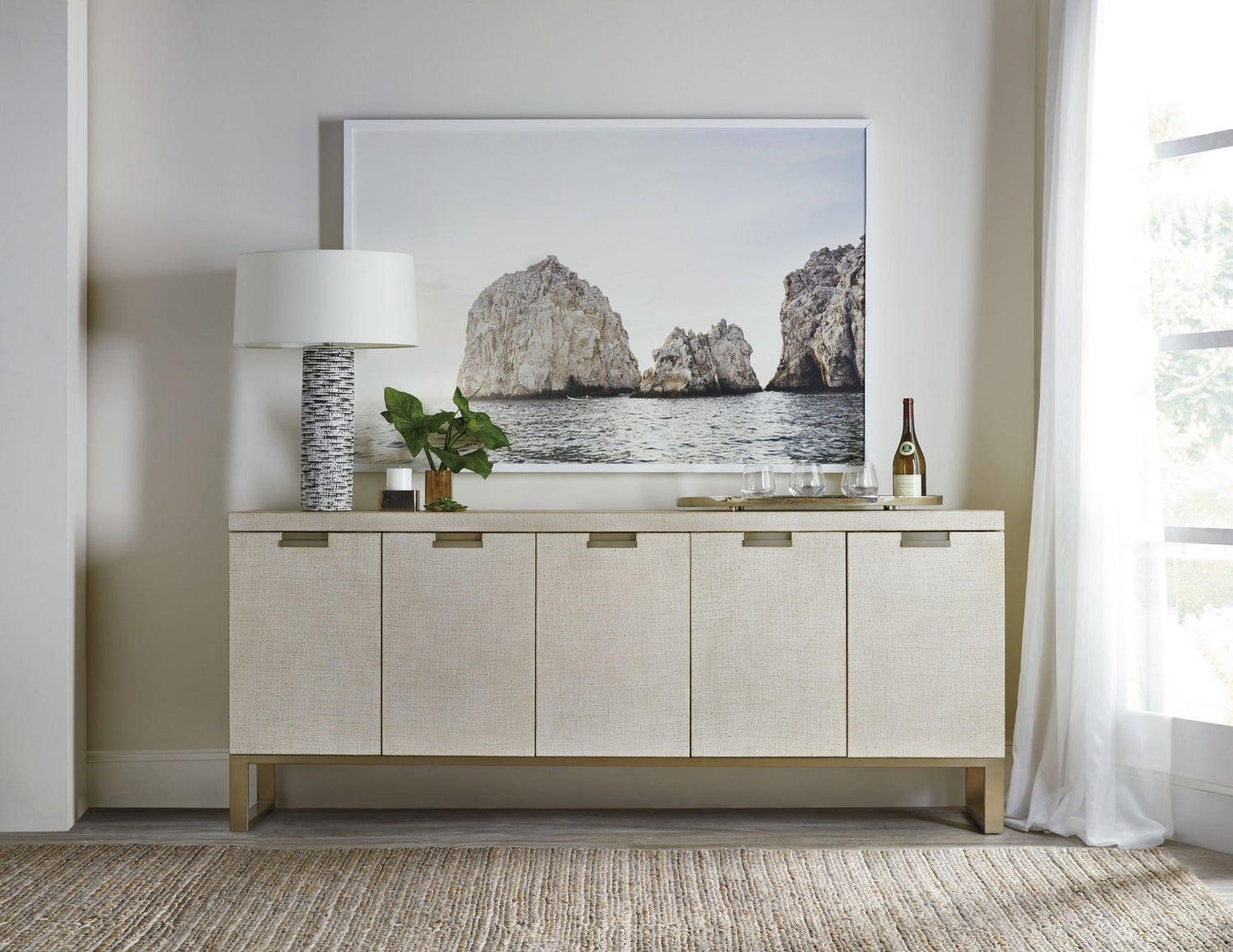 - One adjustable shelf behind left and right pair of doors and one adjustable shelf behind center door