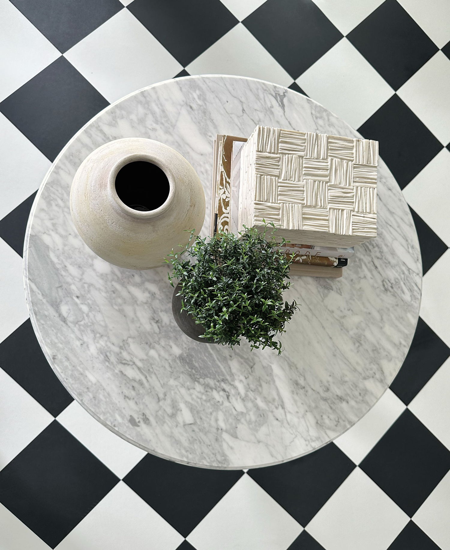 - Carved pedestal base
