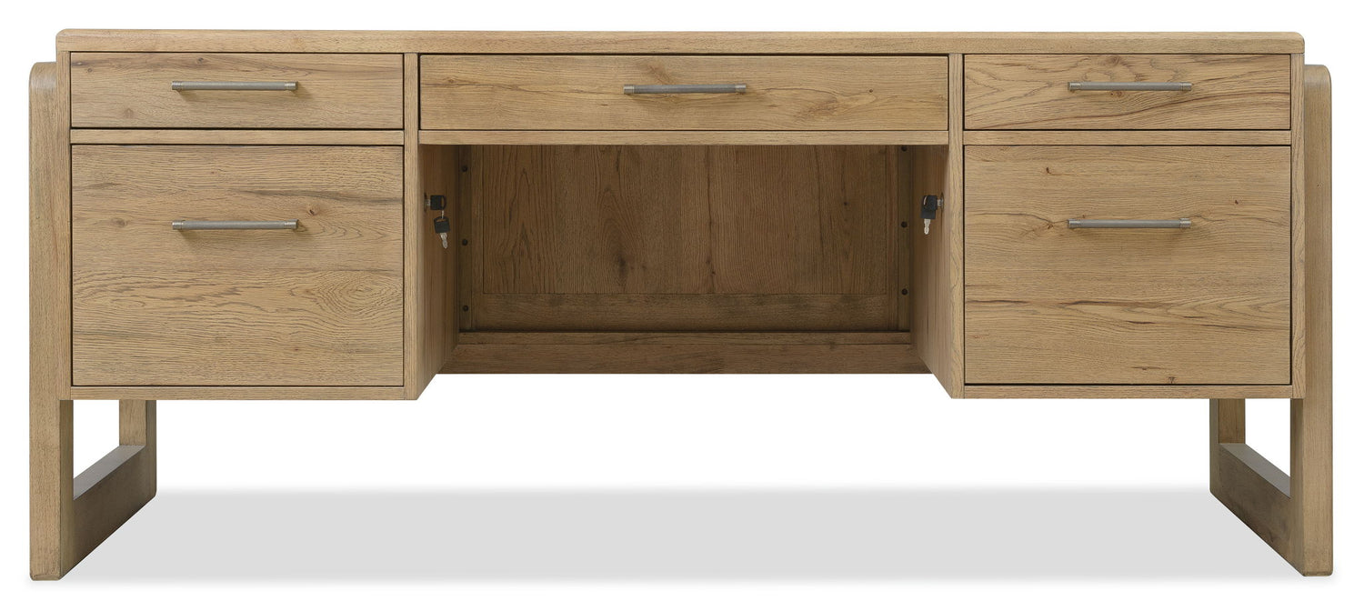 - Two utility drawers with dividers, a pencil tray and writing insert that can be used in either side drawer