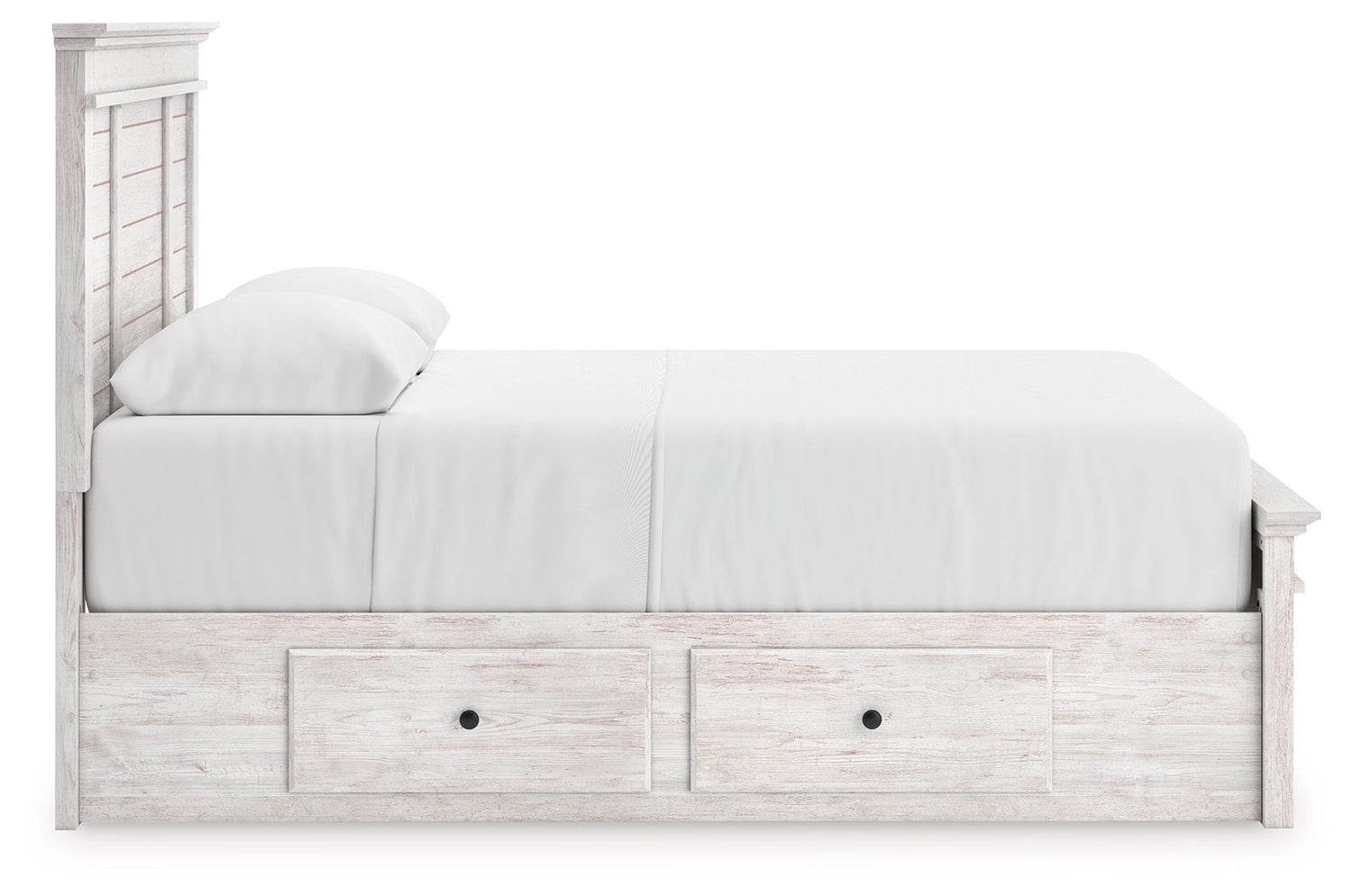 Makidern - Queen Panel Storage Bed With Under Bed Storage Unit - Whitewash