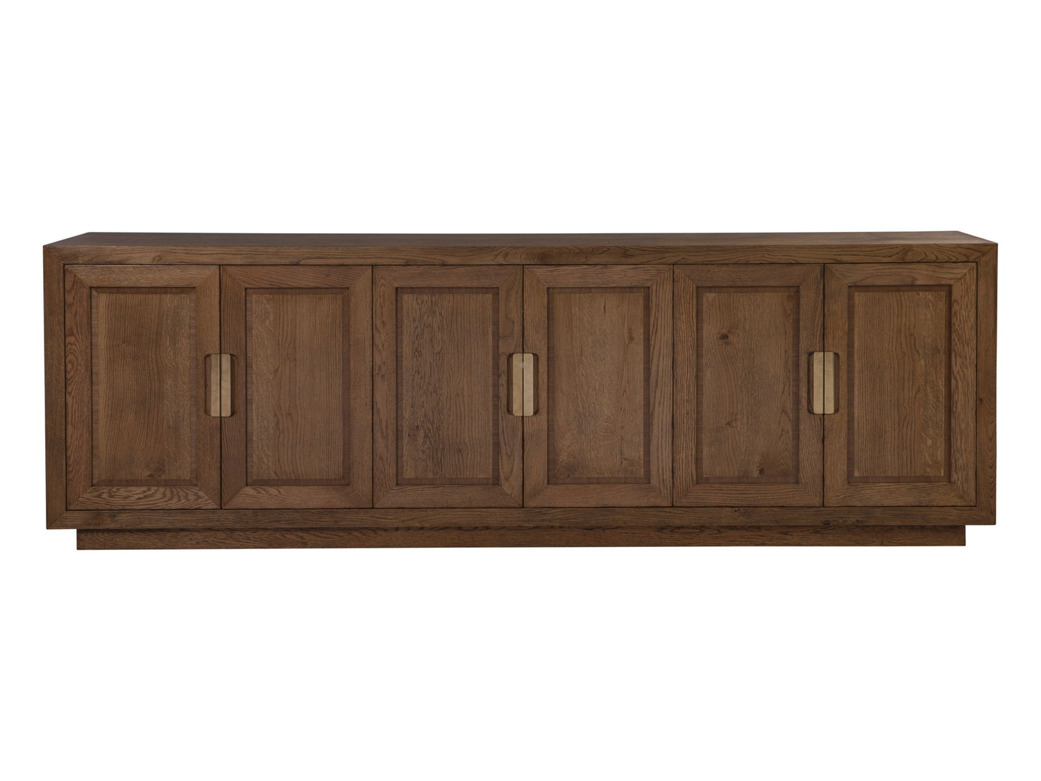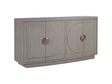 - Bow Fronted Transistional Credenza Featuring Half-oval Overlays And Exceptional Hardware Culled From The Deco Era