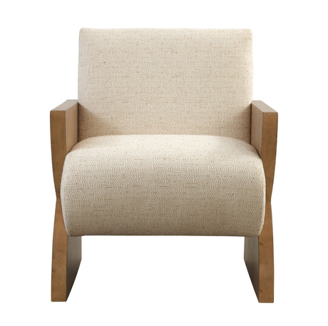 Times Up - Accent Chair - Honey Oak / Ivory Waved Print Fabric
