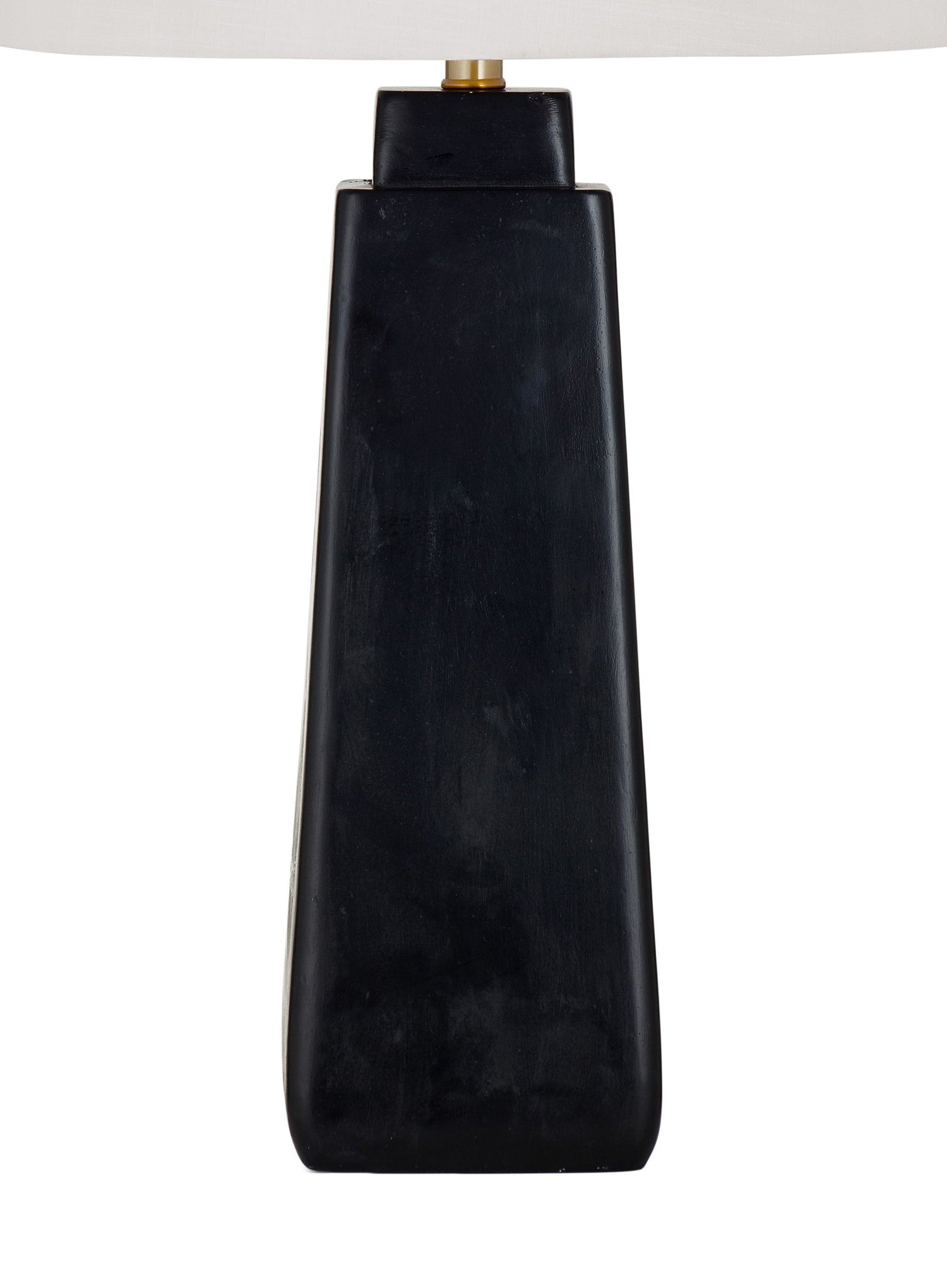 - Tapered concrete base with a matte black finish