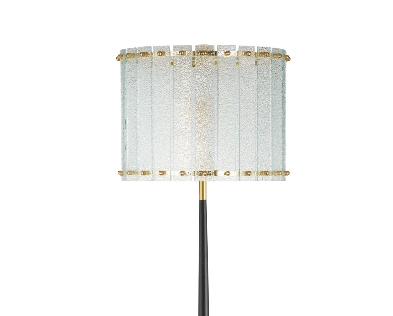 - Shade crafted from vertically arranged textured glass panels