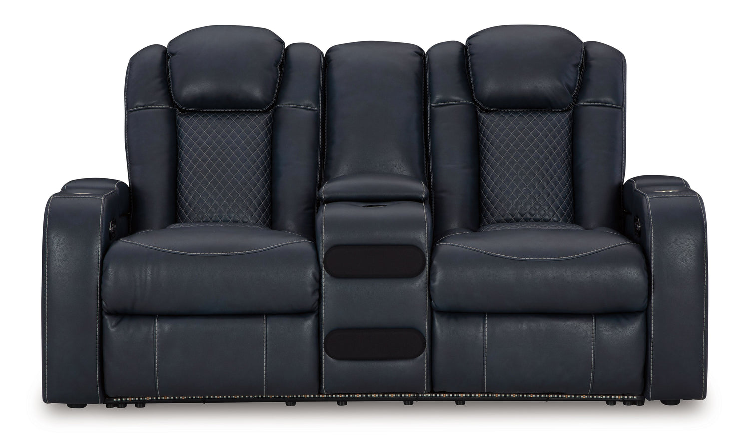 Fyne-Dyme - Power Reclining Loveseat with Console/Adj Hdrst - Sapphire