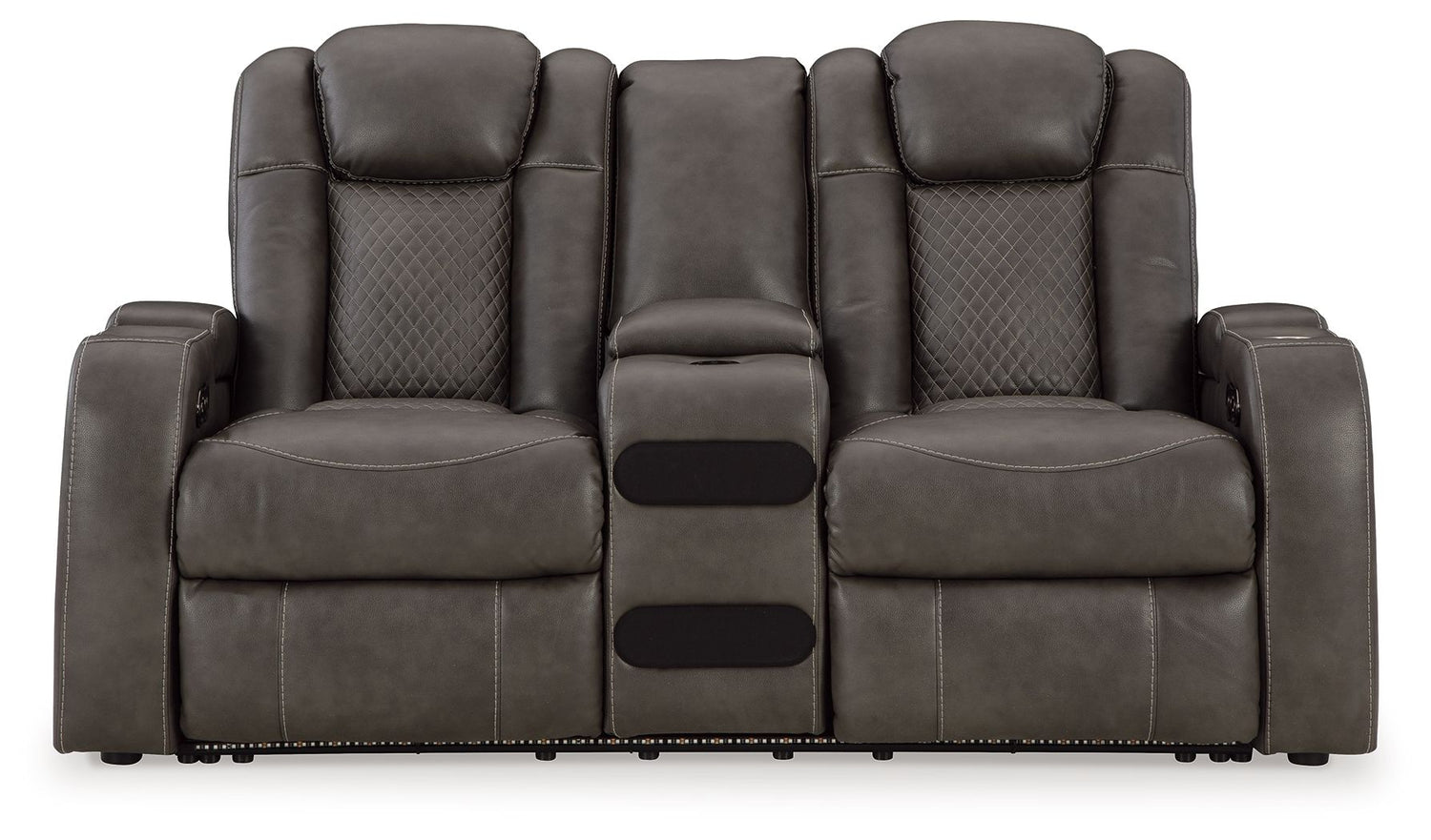 Fyne-Dyme - Power Reclining Loveseat with Console/Adj Hdrst - Shadow