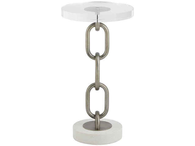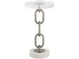 The Link Accent Table features a distinctive 12-inch design with an acrylic top suspended by chain links between white quartz bases. This 22-inch height accent table with its creative design makes it the perfect spot for a drink while adding a touch of coastal whimsy to your living space.