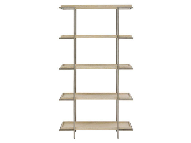 The Dockside Etagere combines oak shelves with Aged Pewter metal supports. This etagere provides generous display space while the mixed materials create architectural interest that enhances your coastal decor.