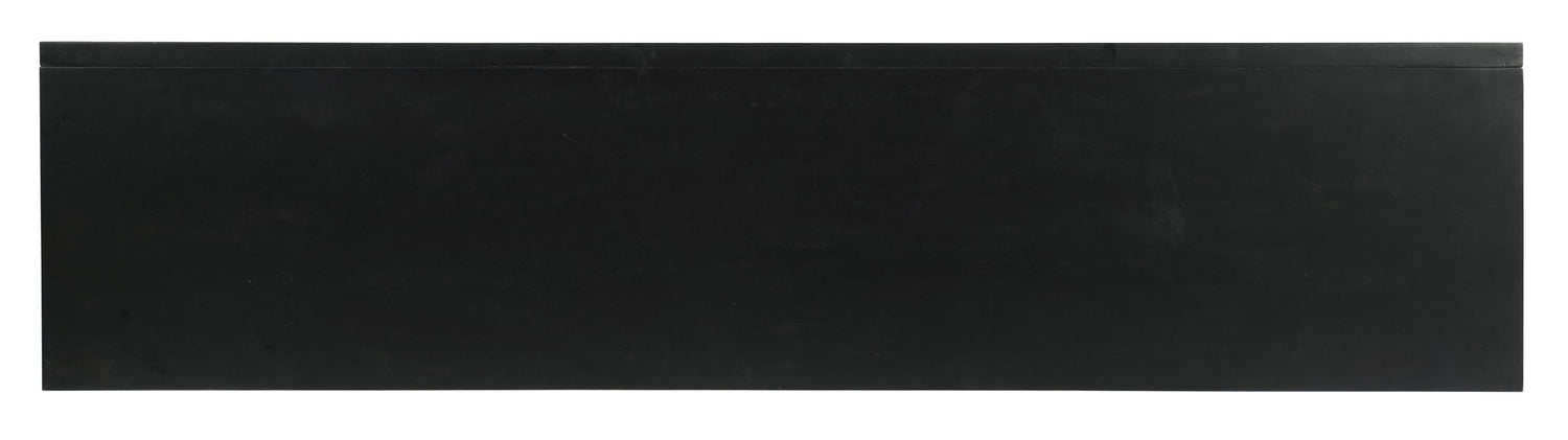 With an air of mystique, the Mountgomery Credenza has a dark wood finish exterior with wavy, grooved door fronts, gold highlighting and shaped gold metal legs. Crafted of Maple Veneers, resin and metal, there are 4 doors with one adjustable shelf behind each pair of doors and a ventilated back panel and FX705 3-plug outlet. Accommodates up to a 75-inch TV.