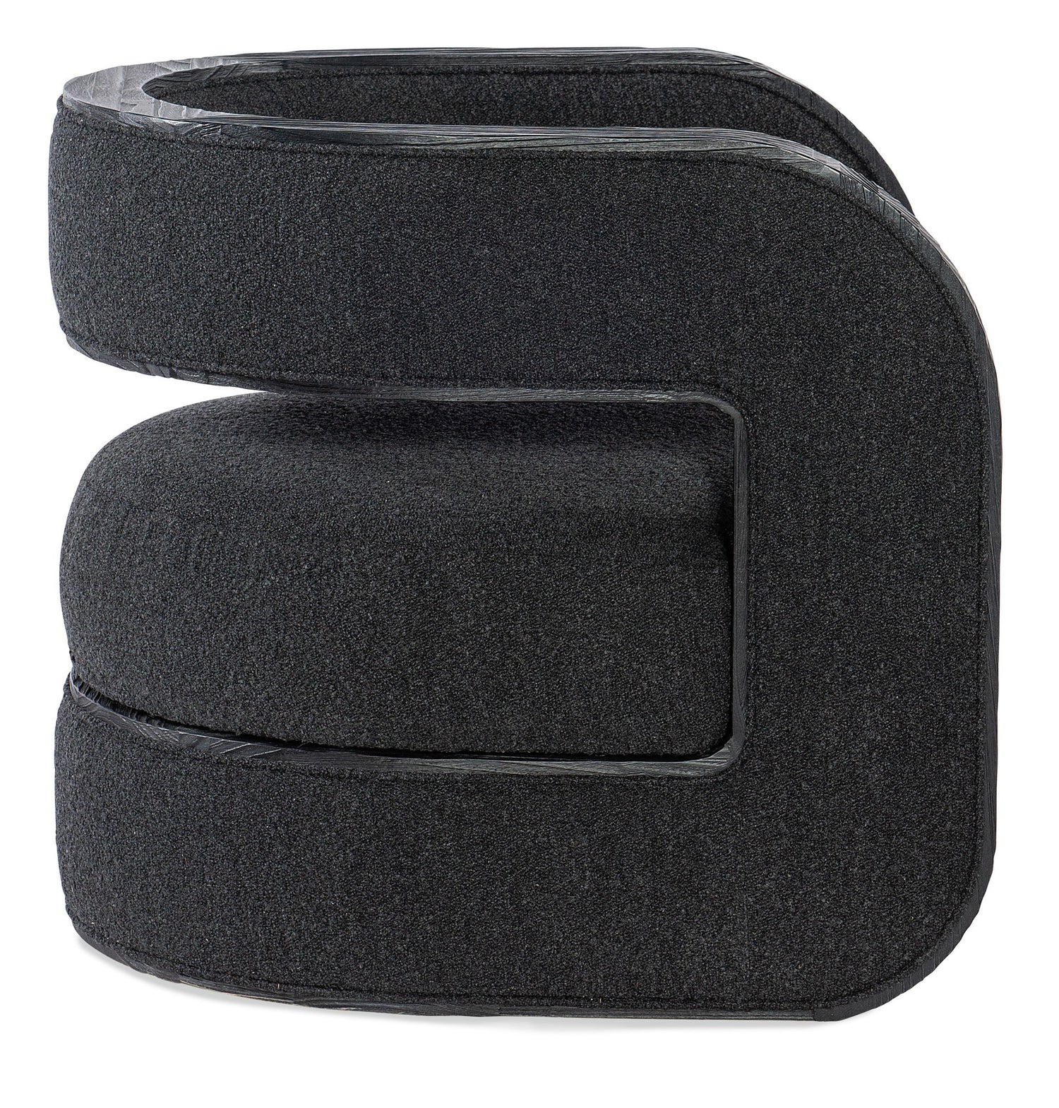 It looks like a piece of decorative art while offering cozy comfort. The Burke Accent Chair is crafted of Pine Veneers in a Charred Black finish, and has an upholstered seat and back covered in Wolf Ebony. The Charred Black finish is achieved through Shou Sugi Ban, a Japanese technique that creates a look resembling burnt wood.