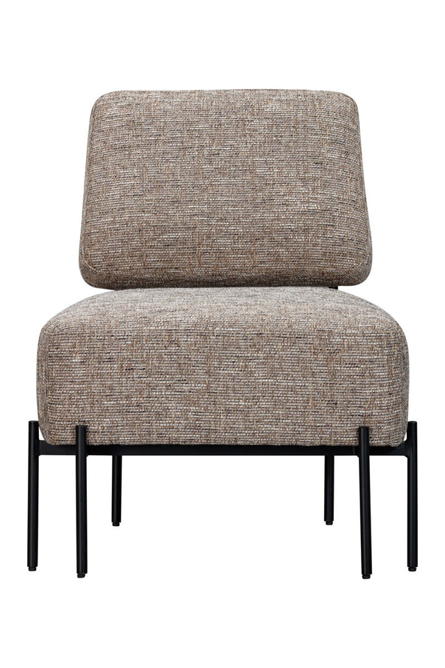 The Pennington Accent Chair features a modern influenced silhouette with a separate seat and seat back set on a matte black iron frame. The heavily textured walnut fabric is 100% polyester for durability and features deep plush padding. Finish: matte black, walnut fabric. Material: iron, polyester.