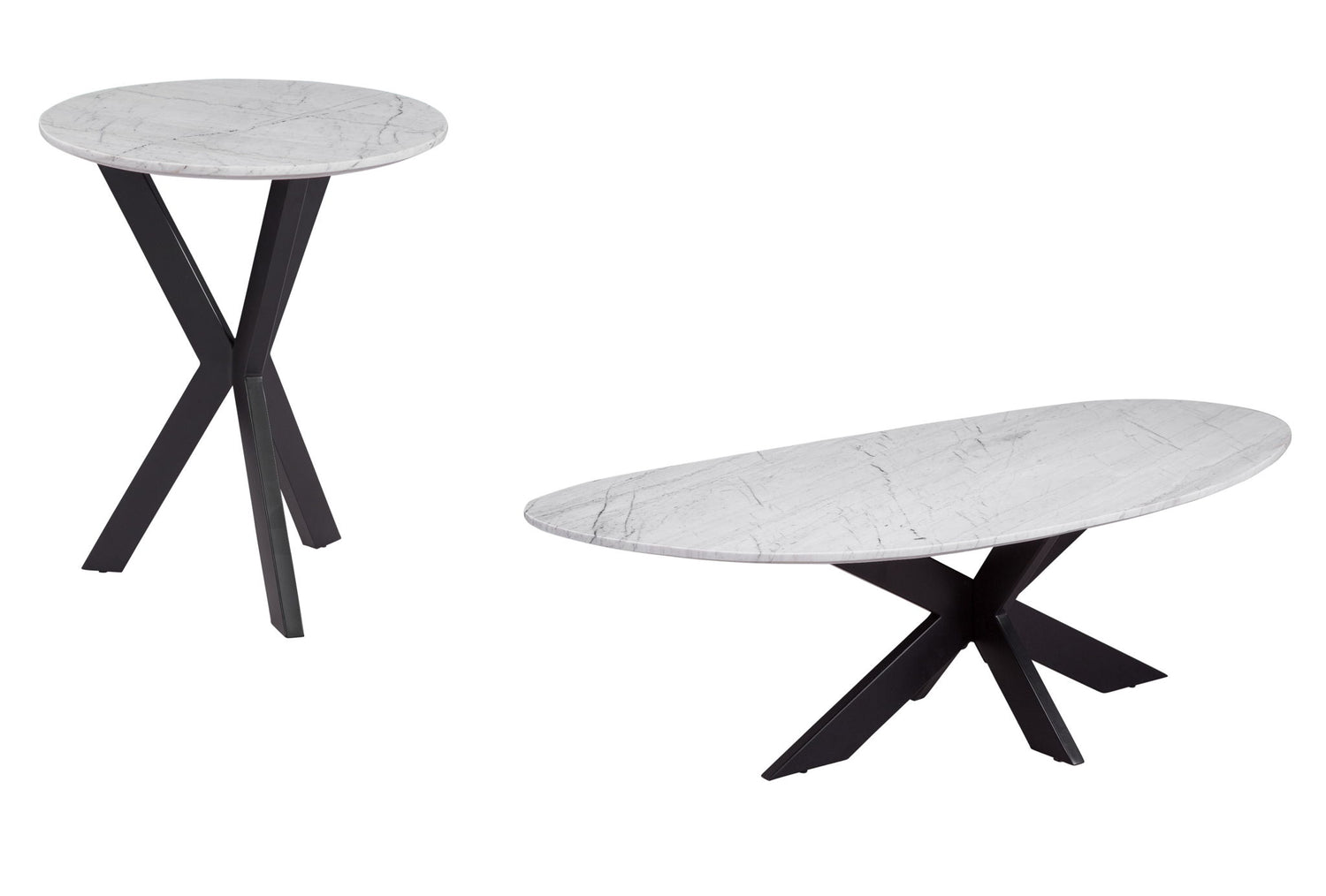 Barton - Oval Coffee Table - Black Iron / White Marble