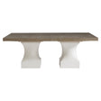 Sleek sculptural forms elevate the simple lines of the Aventura dining table. The table pedestals are formed with concave cast resin over a square base in our Tusk finish. The wood top, which includes two 20-inch leaves, offers a stunning contrast in the warm Marcona finish.