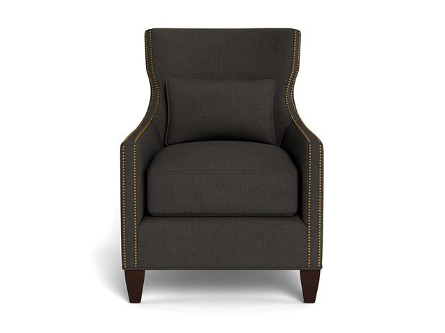 Elevate living spaces with the Barrister Accent Chair, a sleek design showcasing a tall, slightly rounded back and bold nailhead trim.