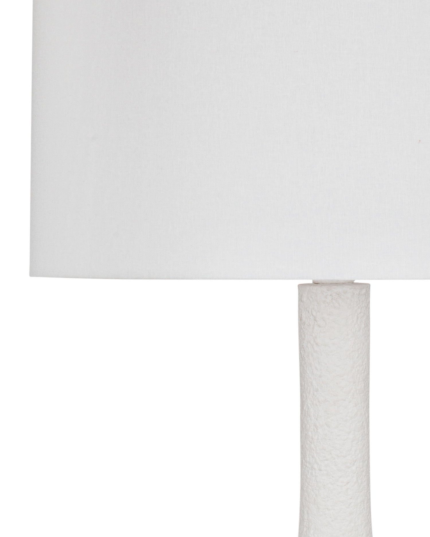 - Sculptural matte white plaster base