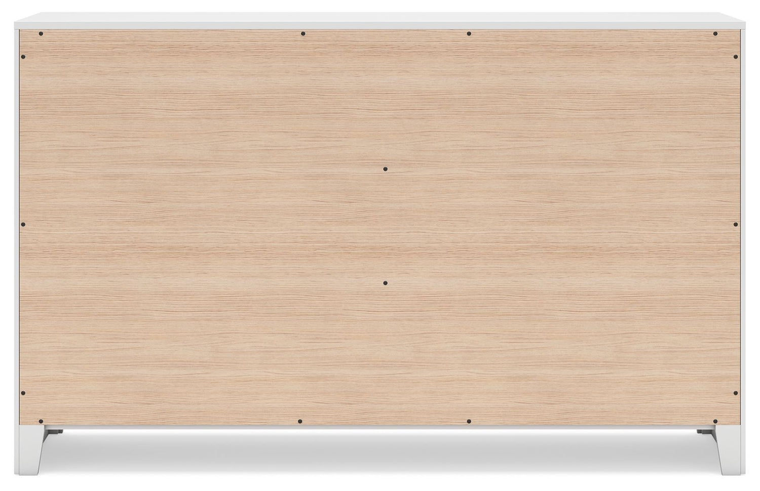- Drawer interiors are lined with a wood grain laminate for a clean, finished look