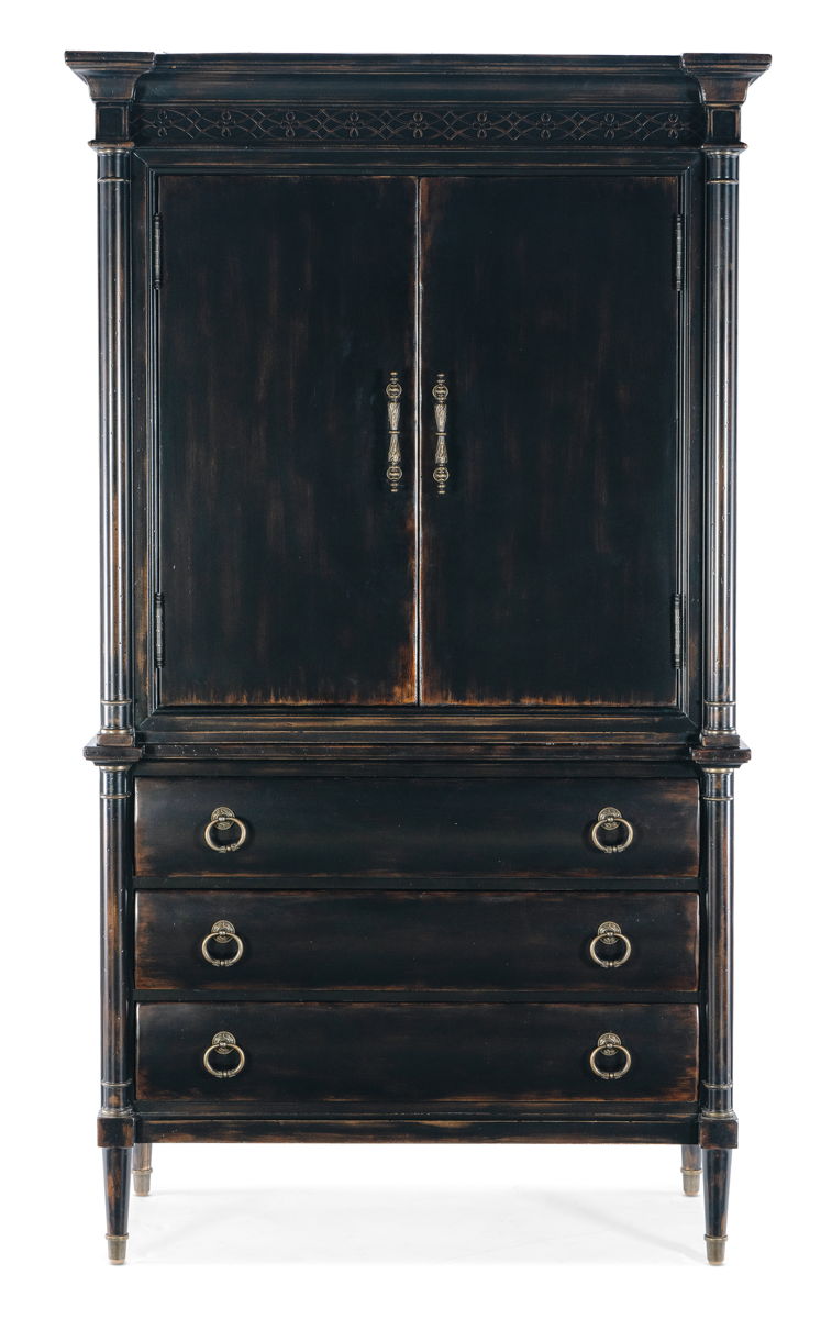 - One self-closing drawer behind front doors with a removable felt liner and removable felt jewelry tray