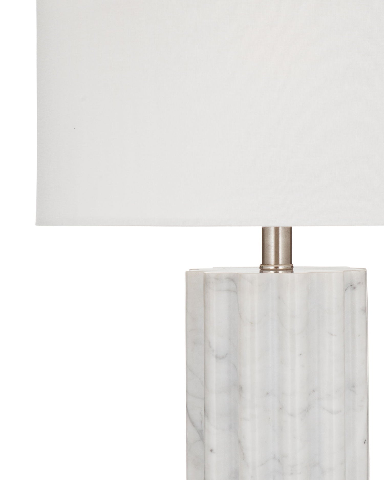 - Solid white marble base with fluted column design