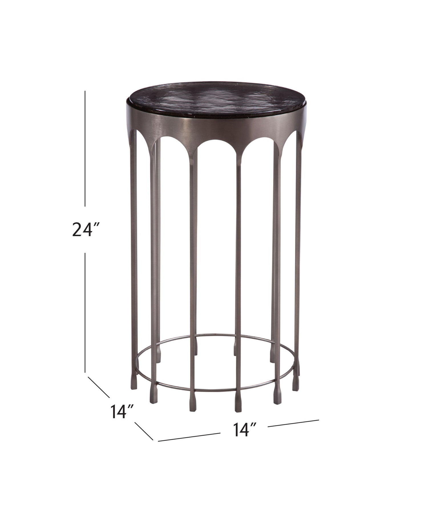 - Thick, round cast glass top
