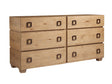- Horizontal Channel Detail Between The 6 Full Extension Self-closing Drawers Wrap Around The End Panels, Tapered Block Feet.