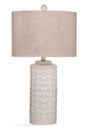 - The patterning on the white ceramic lamp body gives the Marina Table Lamp a French Country style