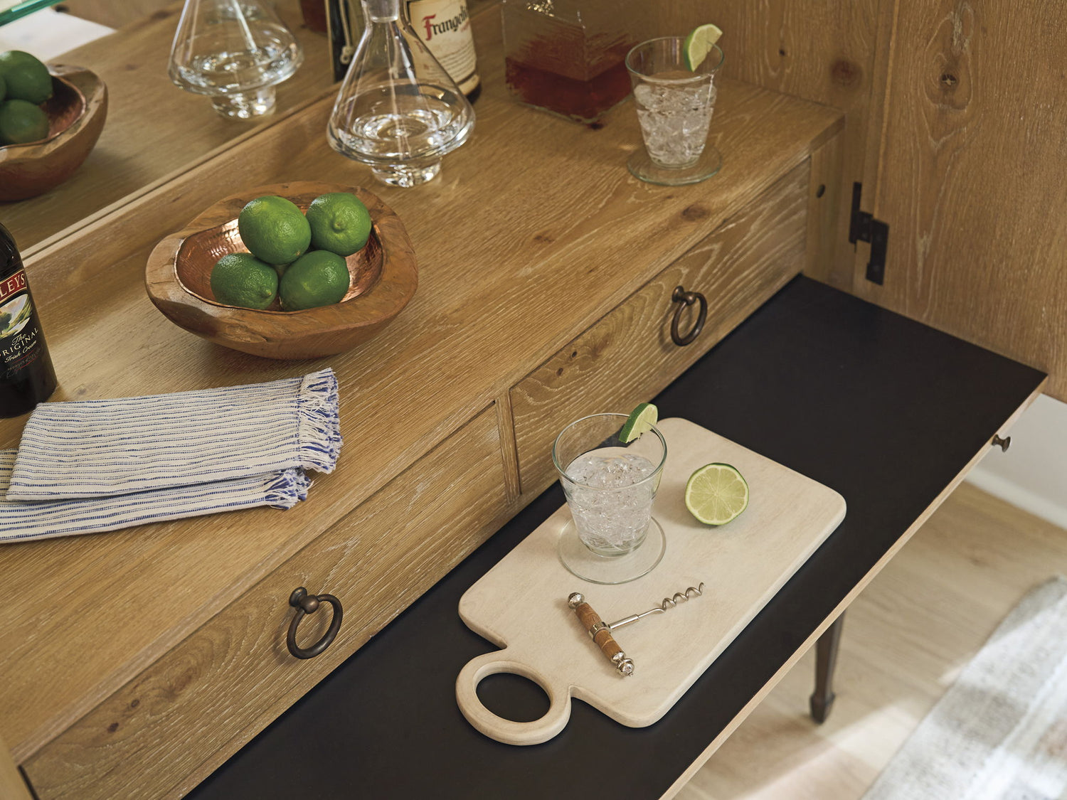 - The Top Features Quartered White Oak Veneer, With Long Elegant Grain Lines