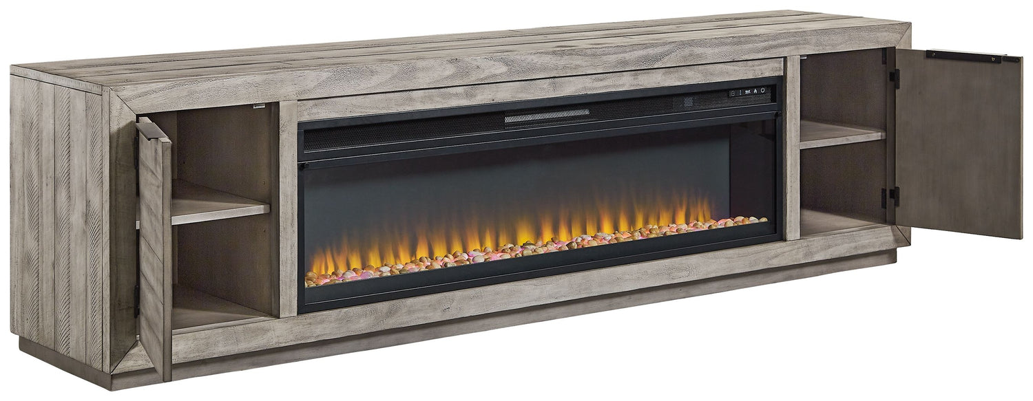 Naydell - Gray - XL TV Stand w/Fireplace Option