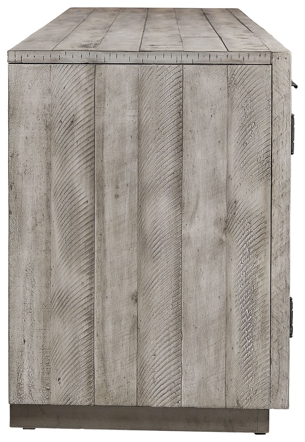 - Weathered light gray finish