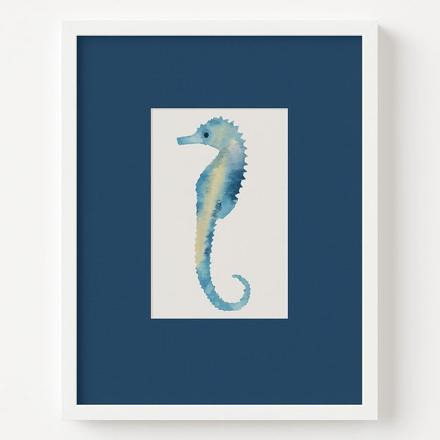 Watercolor - Seahorse I Framed Print - Blue / White / Teal