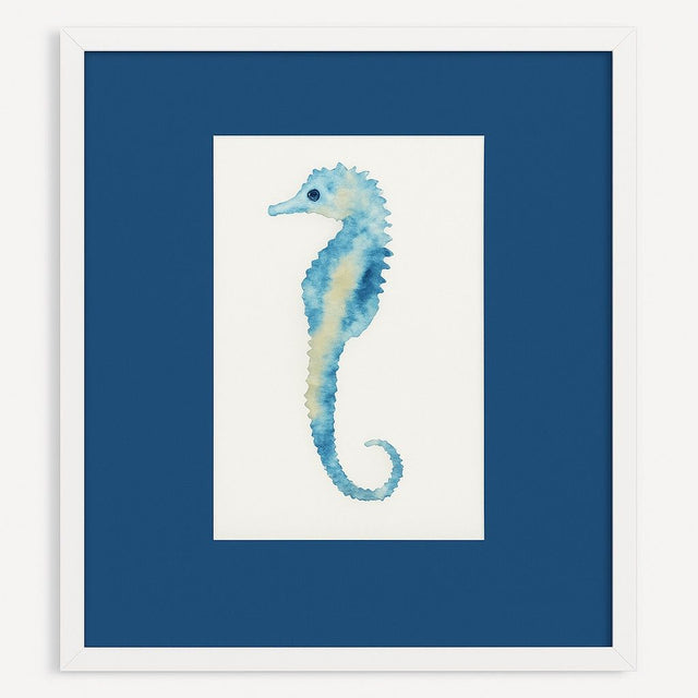 Watercolor Seahorse II Framed Print - Blue / White / Teal